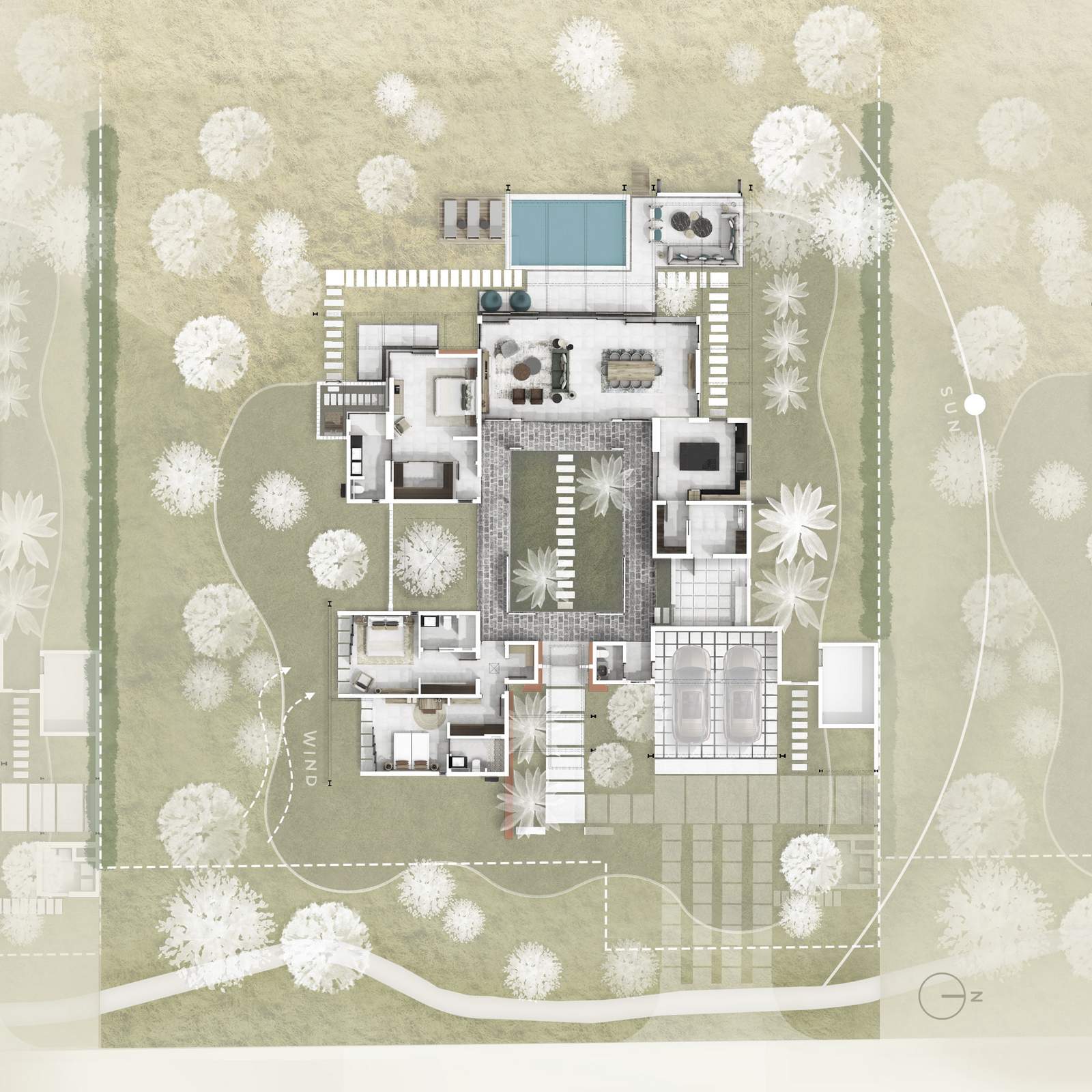 - -l ’architecture visera à favoriser la circulation naturelle de l’air grâce à des patios aménagés comme le poumon de chaque villa, apportant ventilation, végétation et lumière naturelle en son cœur, mais aussi une disposition intelligente des pièces,